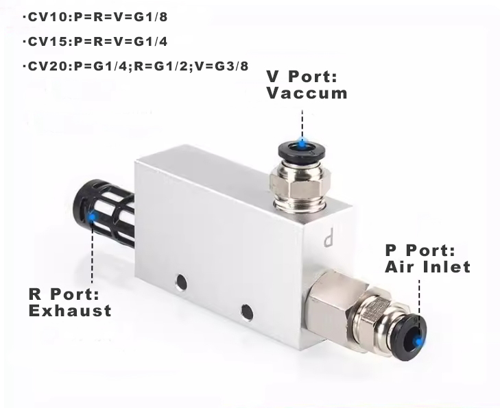 Generatory podciśnienia CV Ouleikai (OLK) służą do zapewnienia środowiska próżniowego potrzebnego dla dysz ssących lub osprzętu. Króciec wlotowy należy podłączyć do sprężonego powietrza, natomiast przyssawkę należy podłączyć do króćca podciśnieniowego. Kiedy sprężone powietrze przepływa z otworu wlotowego do otworu wylotowego, w porcie podciśnieniowym wytwarzana jest próżnia. Tę siłę podciśnienia można wykorzystać do przylegania przedmiotów, wykonując zadania takie jak mocowanie lub podpieranie, poprawiając w ten sposób wydajność operacyjną w produkcji przemysłowej.