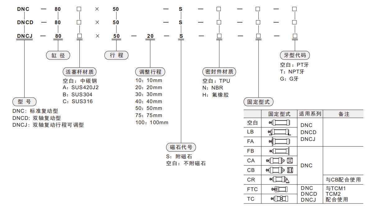 Standardowe specyfikacje standardowe Clinder Series DNC