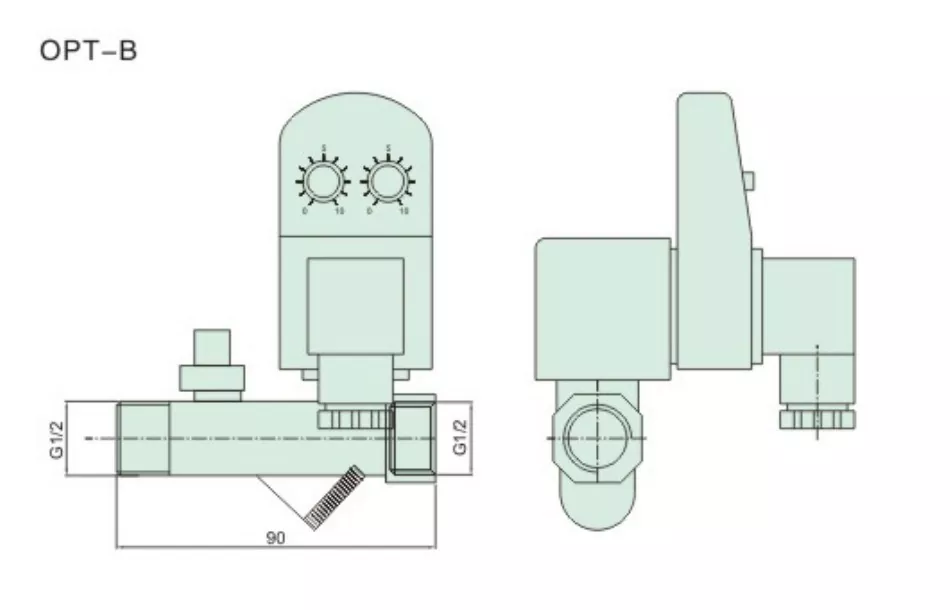 Elektroniczny timer OLK OPT-B Auto Drain obsługuje zarówno sterowanie elektryczne, jak i ręczne wyłączanie jako podwójną ochronę; zewnętrzny ręczny wyłącznik odcinający jest umieszczony na korpusie zaworu, aby zapobiec przepływowi w przypadku awarii zasilania. Wlot znajduje się po stronie oddalonej od wężownicy, otwór środkowy bez gwintu jest wylotem spustowym, a króciec końcowy jest wylotem.