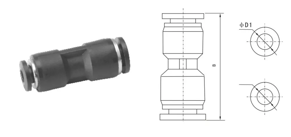PU łączy ten sam wąż powietrzny po obu stronach, PG łączy wąż powietrzny z różnymi średnicami po obu stronach
