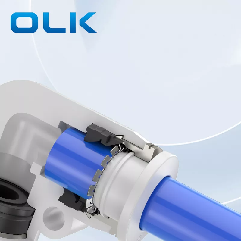 Szybkie łączenie rurki Wewnętrzna Struktura: Uwolnienie, zestaw kart z cynku, sprężyna śluzy, rękaw z blokadą, pierścień uszczelniający, tworzywa sztuczne o wysokiej wytrzymałości