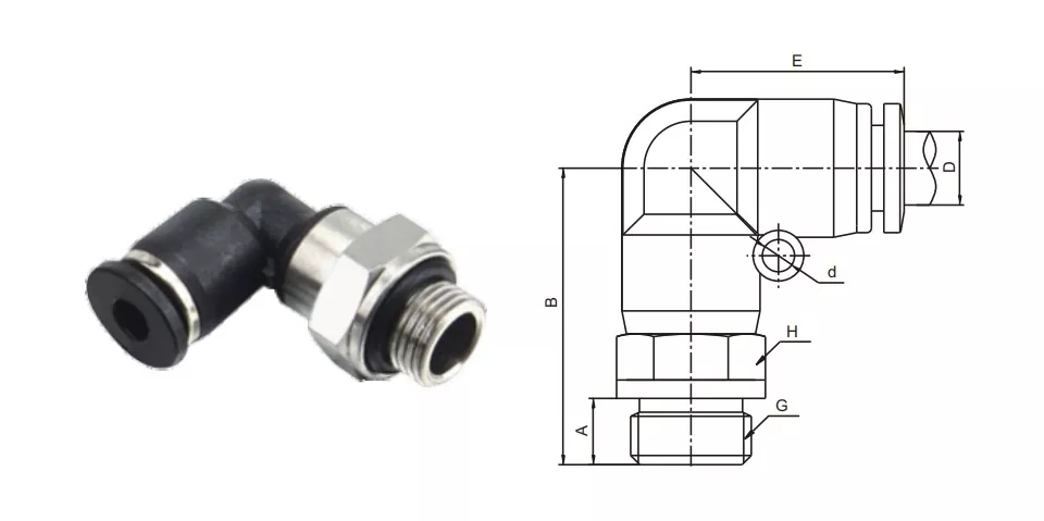 Męskie pchnięcie łokcia PL-G w dopasowaniu rurowym jest 90-stopniowe złącze łokcia i gwint G idealny do stosowania w przestrzeni ograniczonych lub gdzie wymagane jest przekierowanie rur. Wyposażone pierścieniami uszczelniającymi, aby zapobiec wyciekom powietrza lub płynu.