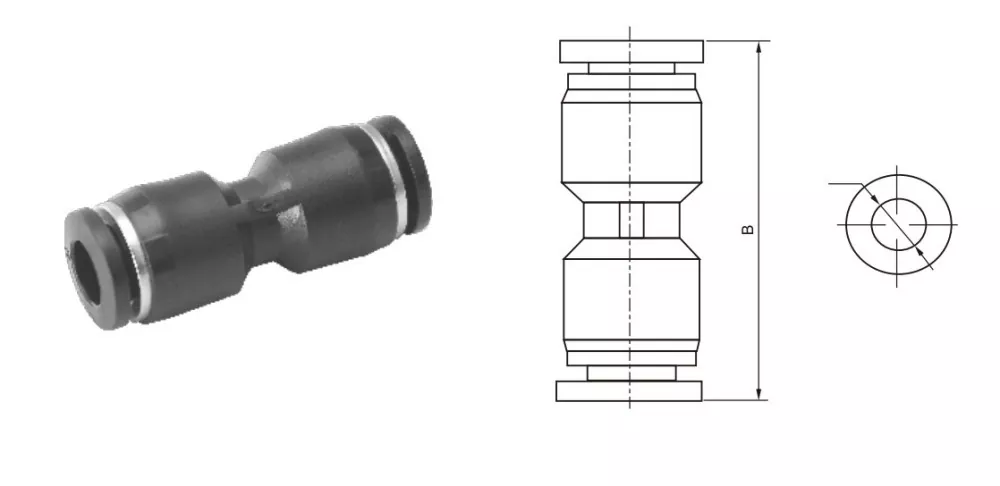 PU łączy ten sam wąż powietrzny po obu stronach, PG łączy wąż powietrzny z różnymi średnicami po obu stronach