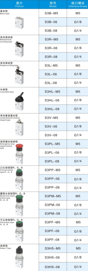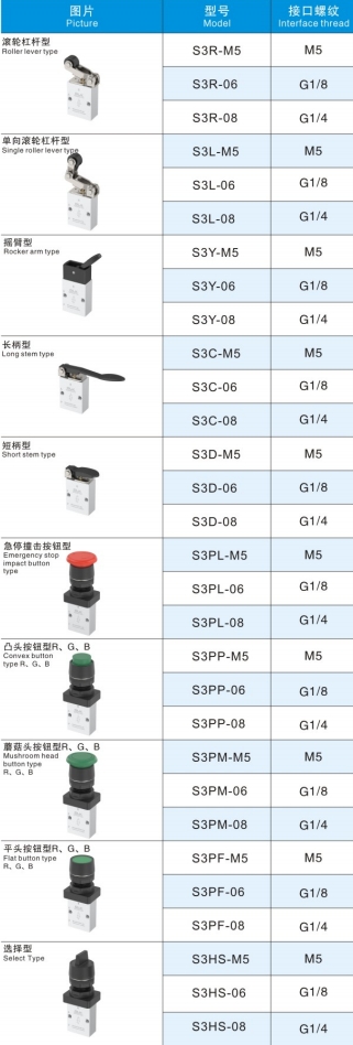 2. Serie S3PF, S3PM, S3PP, S3PL, S3Y, S3HS, S3C, S3D są obsługiwane ręcznie i charakteryzują się różnymi kształtami konstrukcyjnymi głowic sterujących dla wygodnego stosowania w różnych warunkach.