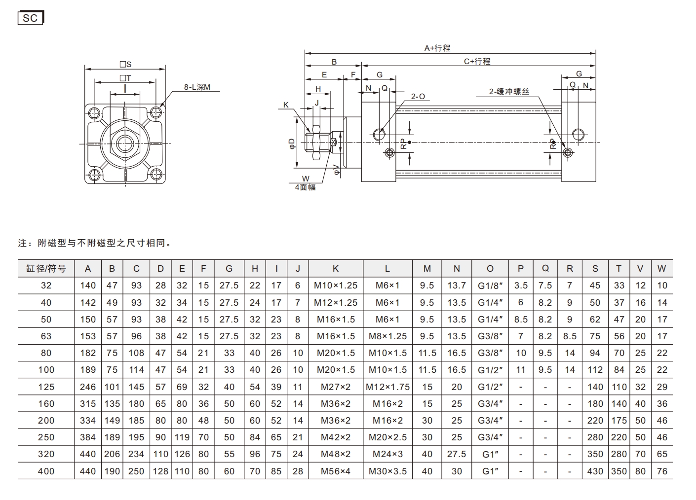 4. W porównaniu ze standardowymi cylindrami IS015552, cylindry serii SC mają mniejszą długość przy tej samej średnicy cylindra.
