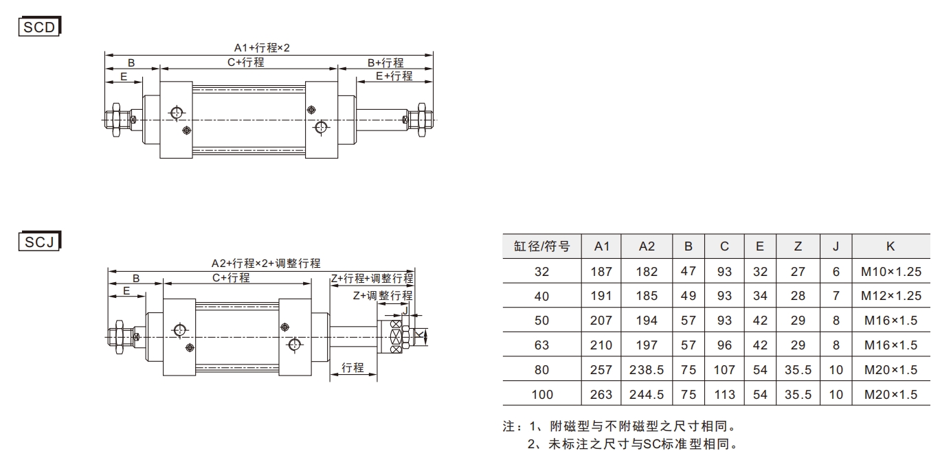 Cylinder standardowy serii SCStandardowe parametry specyfikacji: