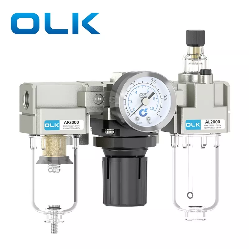 Jednostka FRL typu SMC AC (filtr-regulator-smarownica) to podstawowy element pneumatyczny, który integruje filtrację źródła powietrza, redukcję i regulację ciśnienia oraz obróbkę smarowania. Zapewnia czyste, stabilne i nasmarowane sprężone powietrze do układów pneumatycznych, przedłużając w ten sposób żywotność elementów pneumatycznych i zwiększając stabilność systemu. Jednostka FRL serii OLK AC pełni rolę niezbędnego „strażnika” nowoczesnych układów pneumatycznych.