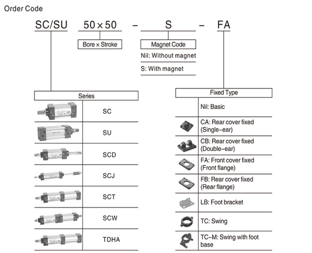 Standardowy cylinder serii SU jest odpowiedni dla mechanicznego branży produkcyjnej, mającą zastosowanie do kontroli i realizacji pneumatycznej w różnych maszynach, zautomatyzowanych liniach produkcyjnych i innych.