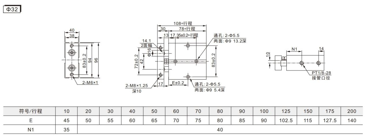 Seria TN podwójna oś standardowa specyfikacja cylindra: